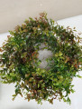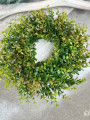 Hustý plastový veniec s listami ktorý vyzerá prirodzene a na dotyk je príjemne mäkký. Lístky sú z flexibilného plastu, takže sa nelámu a veniec sa dá jemne roztiahnuť až do priemeru cca 35 cm