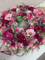 Tento bohato zdobený veniec je výsledkom precíznej ručnej práce, tvorenej s láskou a dôrazom na detail. Každý lístok, kvietok či vetvička má svoje miesto, nič nie je náhodné, všetko ladí.