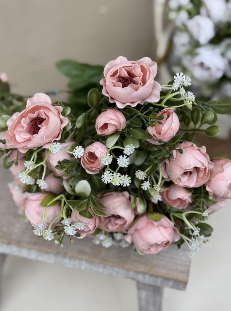Dekoratívna kytička z drobných minikvietkov, ktoré svojím vzhľadom pripomínajú jemnú gypsomilku. Vďaka extra hustému spracovaniu pôsobí veľmi bohato a prirodzene, takže krásne vyplní aranžmány a dodá im jemnú štruktúru.