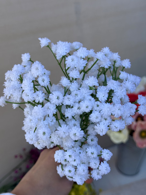 Zápich Gypsomilka vo zväzku je krásny dekoračný prvok v top kvalite, ktorý zaujme na prvý pohľad svojim realistickým spracovaním. Kvety sú vyrobené z kvalitného gumenného materiálu, vďaka čomu pôsobia prirodzene a majú jemný, „živý“ vzhľad.