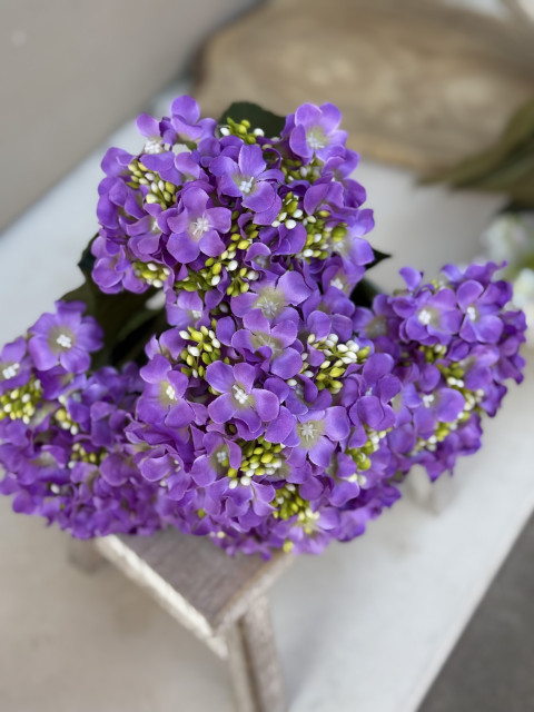 Táto nádherná 45 cm vysoká kytička hortenzie je zložená z 5 samostatných stopiek, pričom každá nesie bohato tvarovaný kvet s priemerom až 12 cm. Vďaka realistickému spracovaniu a krásnym farbám pôsobí ako živá a okamžite oživí každý priestor.
