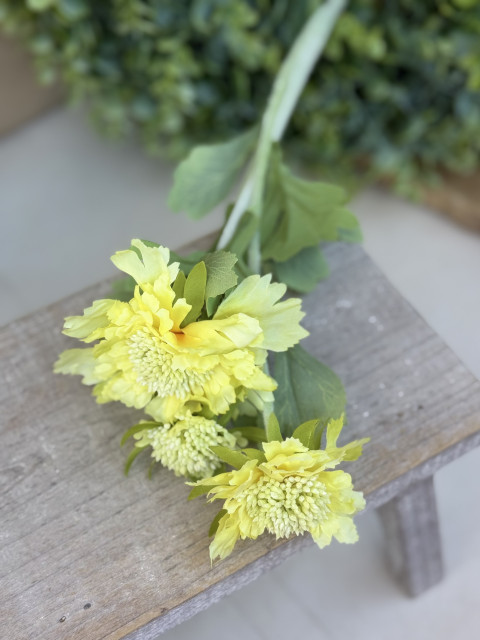 konár SCABIOSA, 3x kvet, jemne chlpatá stonka, 50cm, žltá
