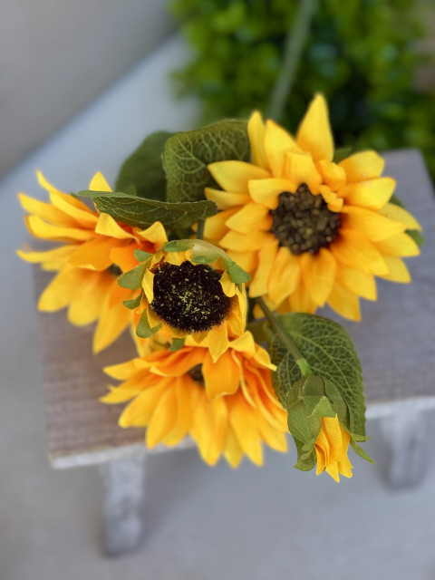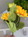 Konár slnečnice v top kvalite s dĺžkou 53 cm je ideálnou voľbou pre každého, kto chce do svojich aranžmánov vniesť prirodzený letný nádych. Obsahuje tri plne rozkvitnuté kvety s priemerom 10 cm a jeden puk, vďaka čomu pôsobí veľmi realisticky a bohato.