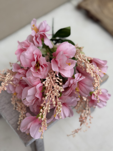 Kytička kvet BOBULE, 6x stonka, 39cm, ružová