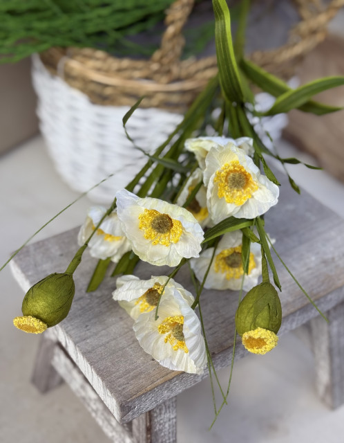 Kytička POĽNÁ, DIVÉ MAKY, TOP kvalita, 53cm, biela