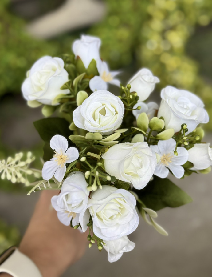 Obsahuje 5 stoniek – ruža, púčik, papraď, zeleň a drobný aranžérsky doplnok.