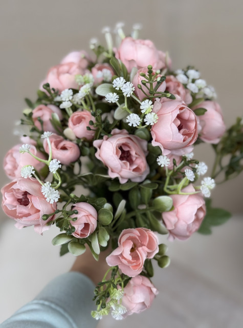Bohatá a elegantná Rarunculus kytička, ktorá na prvý pohľad zaujme svojím objemom a jemnými detailmi. Tvorí ju 14 pevných stoniek, doplnených o jemnú gypsomilku a dekoratívny doplnok, vďaka čomu pôsobí prirodzene, sviežo a veľmi dekoratívne.