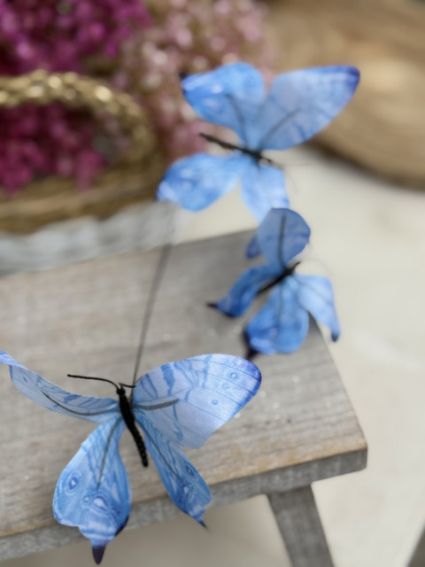 Dekoratívne motýle na dlhom konári sú výrazným a zároveň jemným prvkom do jarných aj celoročných aranžmánov. Vďaka dlhej stonke pôsobia veľmi vzdušne a prirodzene, akoby motýle práve lietali alebo si sadli na vetvičky v dekorácii. Práve tento efekt ich robí výnimočnými najmä v jarných dekoráciách a vencoch.