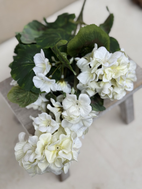 Krásne husté muškáty, ktoré na prvý pohľad nerozoznáte od pravých. Táto umelá pelargónia má 9 bohato rozvetvených stoniek a pôsobí plným, prirodzeným dojmom, presne tak, ako ich poznáte z letných parapetov.