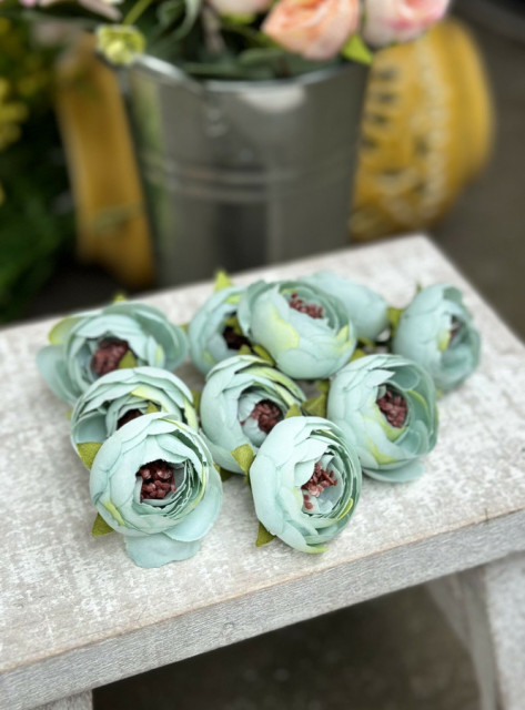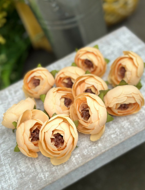 Textilná hlavička ranunculusu, ktorá pôsobí ako živá – jemné okvetné lístky, krásne tvarované vrstvy a realistický vzhľad z nej robia obľúbenú stálicu každého aranžéra.