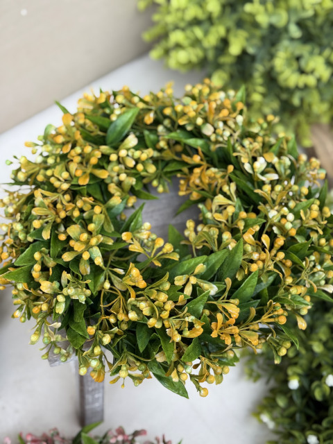 Venček BOBULE s lístkami, 29-30cm, žltý