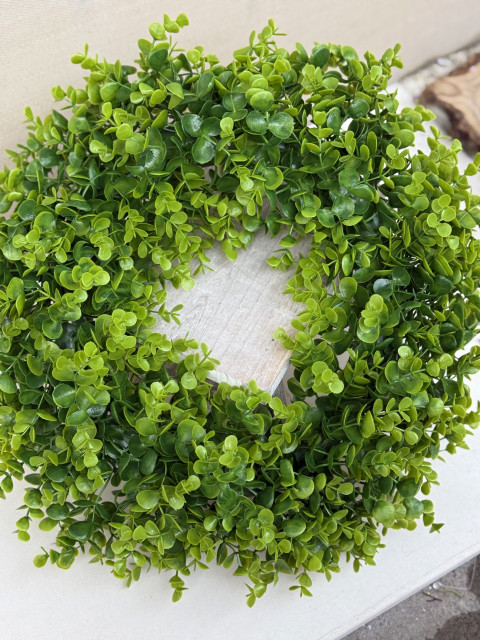 Hustý plastový veniec s realistickým eukalyptom, ktorý vyzerá prirodzene a na dotyk je príjemne mäkký. Lístky sú z flexibilného plastu, takže sa nelámu a veniec sa dá jemne roztiahnuť až do priemeru cca 50 cm (štandardne 48 cm).