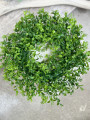 Hustý plastový veniec s listami ktorý vyzerá prirodzene a na dotyk je príjemne mäkký. Lístky sú z flexibilného plastu, takže sa nelámu a veniec sa dá jemne roztiahnuť až do priemeru cca 35 cm
