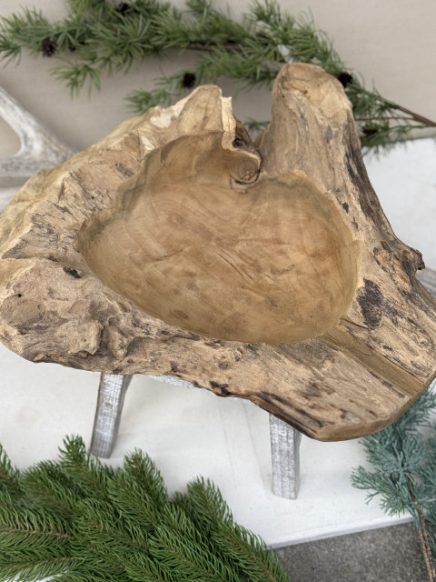 Drevená misa z masívu, ktorá má dušu a poriadnu váhu. Každý kúsok je originál vyrezaný z jedného kusa dreva, s viditeľnou štruktúrou, nepravidelným tvarom a prirodzenými nedokonalosťami, ktoré jej dávajú charakter. Je ťažká, poctivá a pôsobí stabilne.