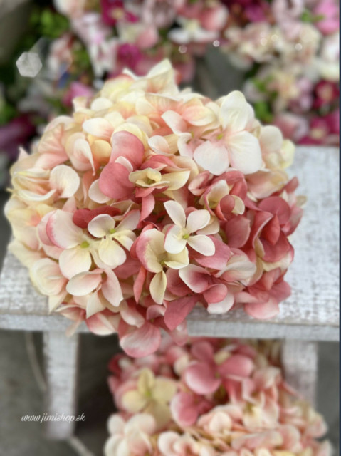 Nechajte sa očariť krásou tejto realistickej hortenzie, ktorá vyzerá ako čerstvo odtrhnutá z lúky. Každý kvet je starostlivo vyrobený z pogumovaného textilu, v top kvalite, aby vydržal celé roky a stále vyzeral ako živý.