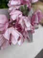 Kvety sú precízne spracované, detailne tieňované a pôsobia veľmi realisticky. Na prvý pohľad zaujmú svojou plnosťou a jemnými prechodmi farieb. Vďaka dĺžke približne 90 cm je konár ideálny do vysokých váz, kde krásne vynikne ako solitér, ale rovnako sa hodí aj do veľkých aranžmánov či vencov na vnútorné použitie.