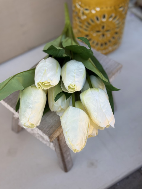 Kytica má 12 stoniek, vďaka čomu vyzerá hustá a plná aj samostatne vo váze. Je rovnako vhodná na jarné aranžmány, vence, kvetinové dekorácie či kreatívne tvorenie. Kvety si držia tvar a farbu, nevyžadujú údržbu a sú ideálne na opakované použitie.