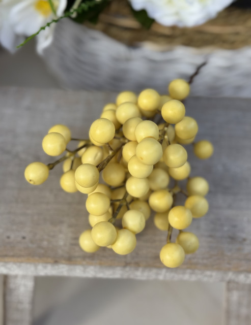 Elegantná kytička s bobuľami v top kvalite, ktorá zaujme na prvý pohľad. Listy sú spracované mimoriadne realisticky, pôsobia autenticky, takmer ako živé. Bobuľky sú drevené, čo dodáva celej kytičke pevnosť, prirodzený vzhľad a zároveň pocit prémiového spracovania.