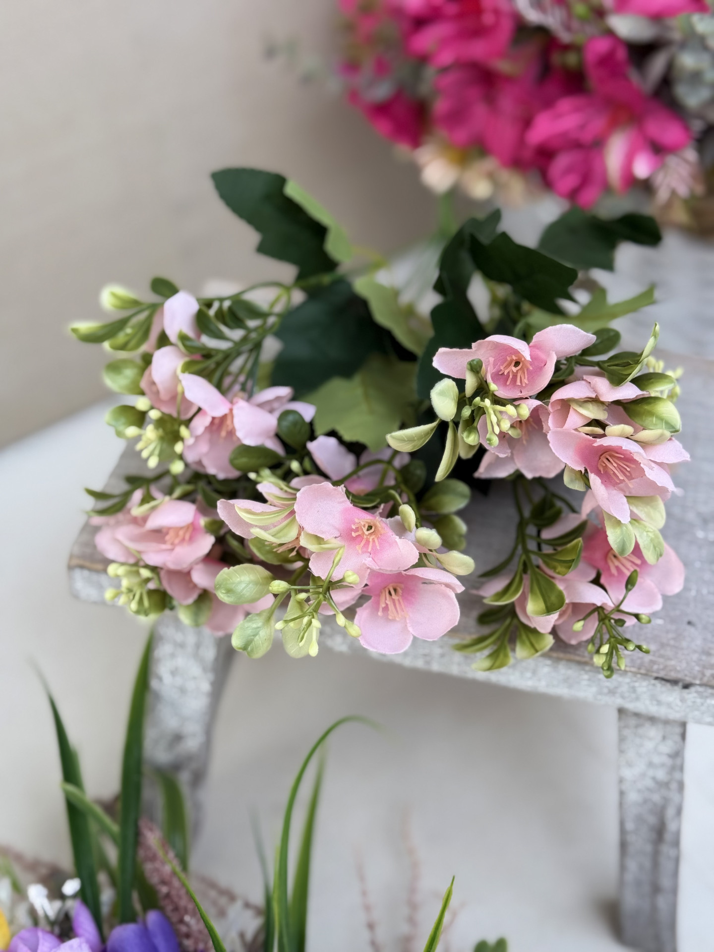 Kytička doplnkový MINI kvet s listami, 36cm, ružová