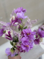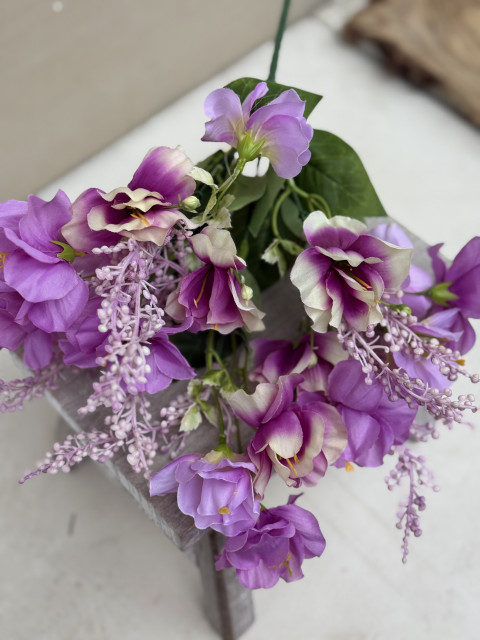Jemná, romantická kytička,ktorá vynikne v každej dekorácii. Dominantou je krásny kučeravý kvet z textilu, ktorý pôsobí mäkko a prirodzene. Dopĺňajú ho dekoratívne bobuľky a detailne spracované listy, vďaka čomu je celá kytička bohatá a vizuálne zaujímavá.