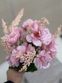 Jemná, romantická kytička, ktorá vynikne v každej dekorácii. Dominantou je krásny kučeravý kvet z textilu, ktorý pôsobí mäkko a prirodzene. Dopĺňajú ho dekoratívne bobuľky a detailne spracované listy, vďaka čomu je celá kytička bohatá a vizuálne zaujímavá.