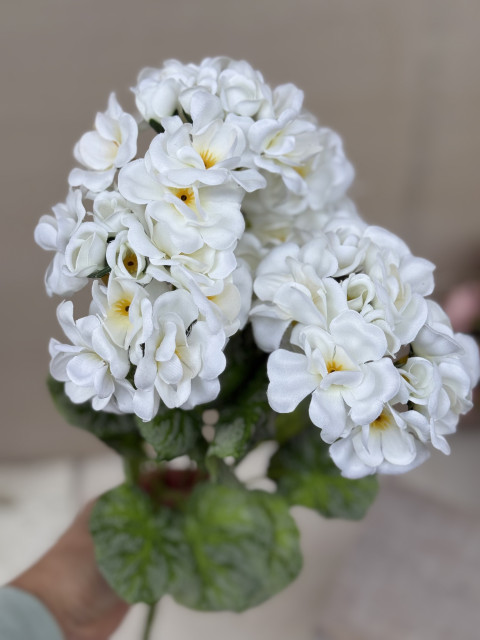 Krásna a mimoriadne realistická kytička Muškátu, ktorá na nerozoznanie pripomína živú rastlinu. Kvety aj listy sú vyrobené z kvalitného textilu, precízne prepracované do posledného detailu, vďaka čomu pôsobia prirodzene a sviežo. Stonka je plastová, pevná a vhodná na ďalšie aranžovanie.
