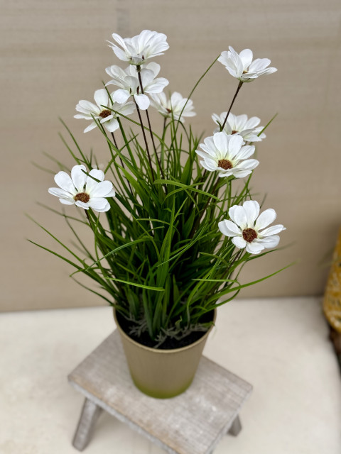 Dekorácia v kvetináči – vykvitnuté margarétky 58 cm
