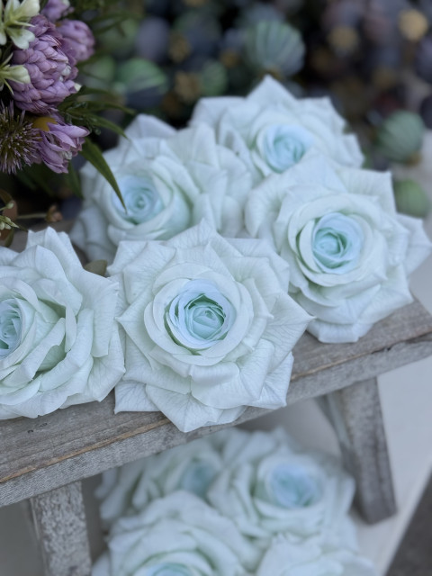 Táto textilná ruža s priemerom 9 cm je ako stvorená pre tých, ktorí milujú krásu v detailoch. Každý lupienok je prepracovaný s dôrazom na prirodzenosť, jemné žilkovanie na lupeni dodáva ruži autentický a romantický vzhľad.