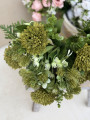 Veľká a výrazná dekoračná kytica v krásnej cyklaménovo-fialovej farbe, ktorá okamžite upúta pozornosť. Pôsobí veľmi bohato vďaka hustým, strapatým kvetom a množstvu zelene a doplnkov.