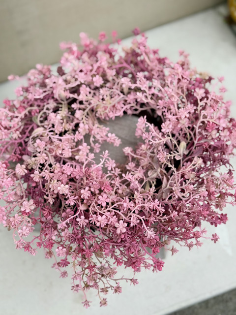 Veniec, mini kvitnúci kvet, hustý, 32cm, ružový